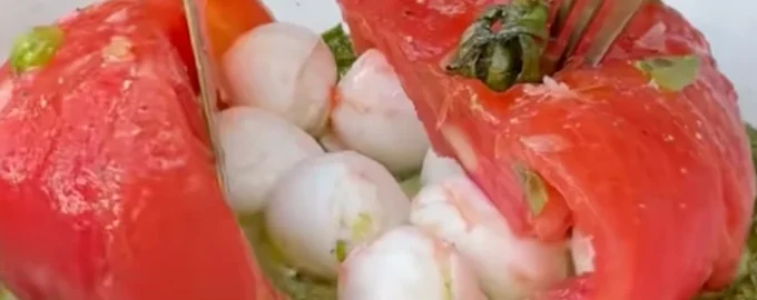 Photo : à partir de sources ouvertes Une salade italienne classique a été remise au goût du jour La salade Caprese aux tomates farcies et au pesto est...